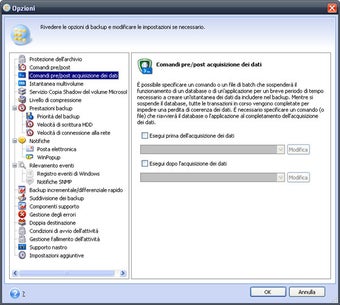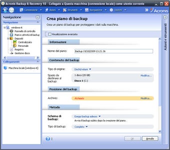 Potrai pianificare attività di backup e ripristino nel tempo, eseguirle automatico in base a degli eventi e programmare comandi da eseguire prima e dopo l'acquisizione dei dati. Le immagini di sistema create possono essere salvate su specifici percorsi (includendo cartelle locali o remote, Secure Zone o server FTP).